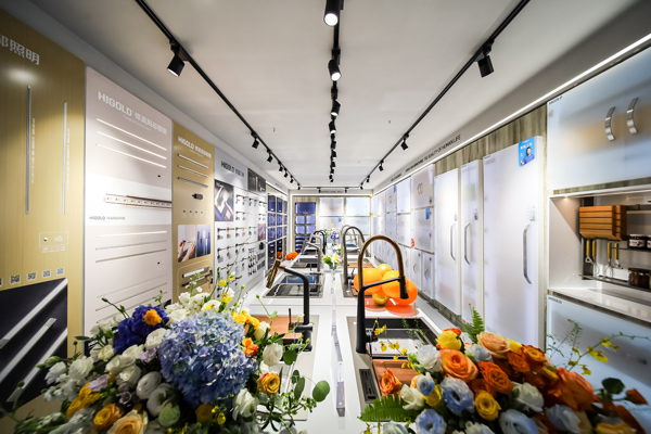 悍高南宁旗舰店全新升级开业,从门头门面、展厅布局、上样产品全方位提升,整个展厅空间焕新规划分为厨房功能五金、衣柜功能五金、基础五金、水槽龙头、装饰五金、卫浴五金、厨电区域,给消费者更优质、沉浸式的到店选品体验。