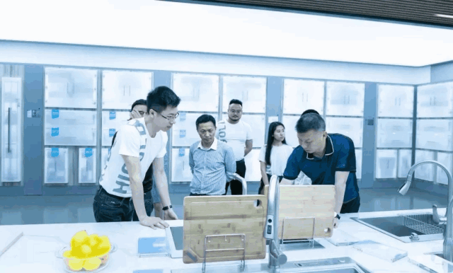 ▲悍高欧董详细为金牌嘉宾介绍厨房功能五金