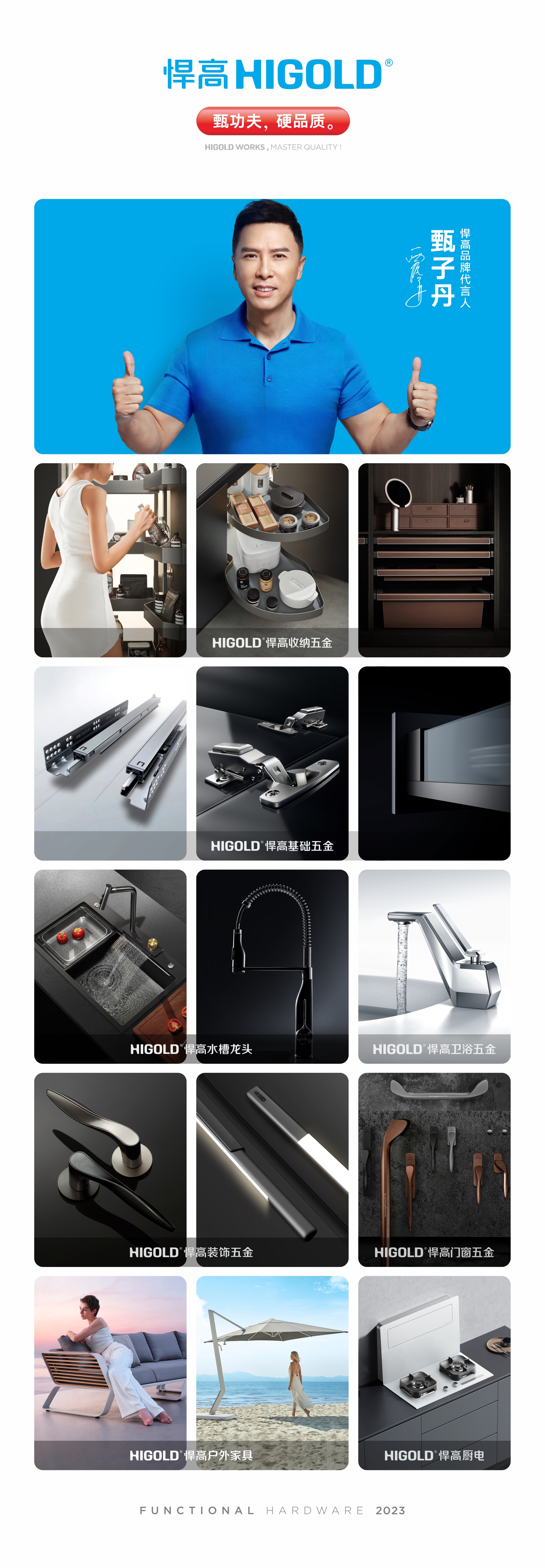 悍高在追求简洁美学的前提下,产品内部同样不失精细考究的设计处理,致力于解密舒适空间的内涵,让居住者与空间产生共鸣,最终成就内心的居家之所。本次新品发布会,悍高集团功能五金事业部、智能厨具事业部及智能厨电事业部负责人以富有激情的演讲,深度呈现悍高2023全系列明星新品,字字铿锵,句句回响,用更消费端的沟通话语传达整体家居五金美学,呈现品牌独特优势。