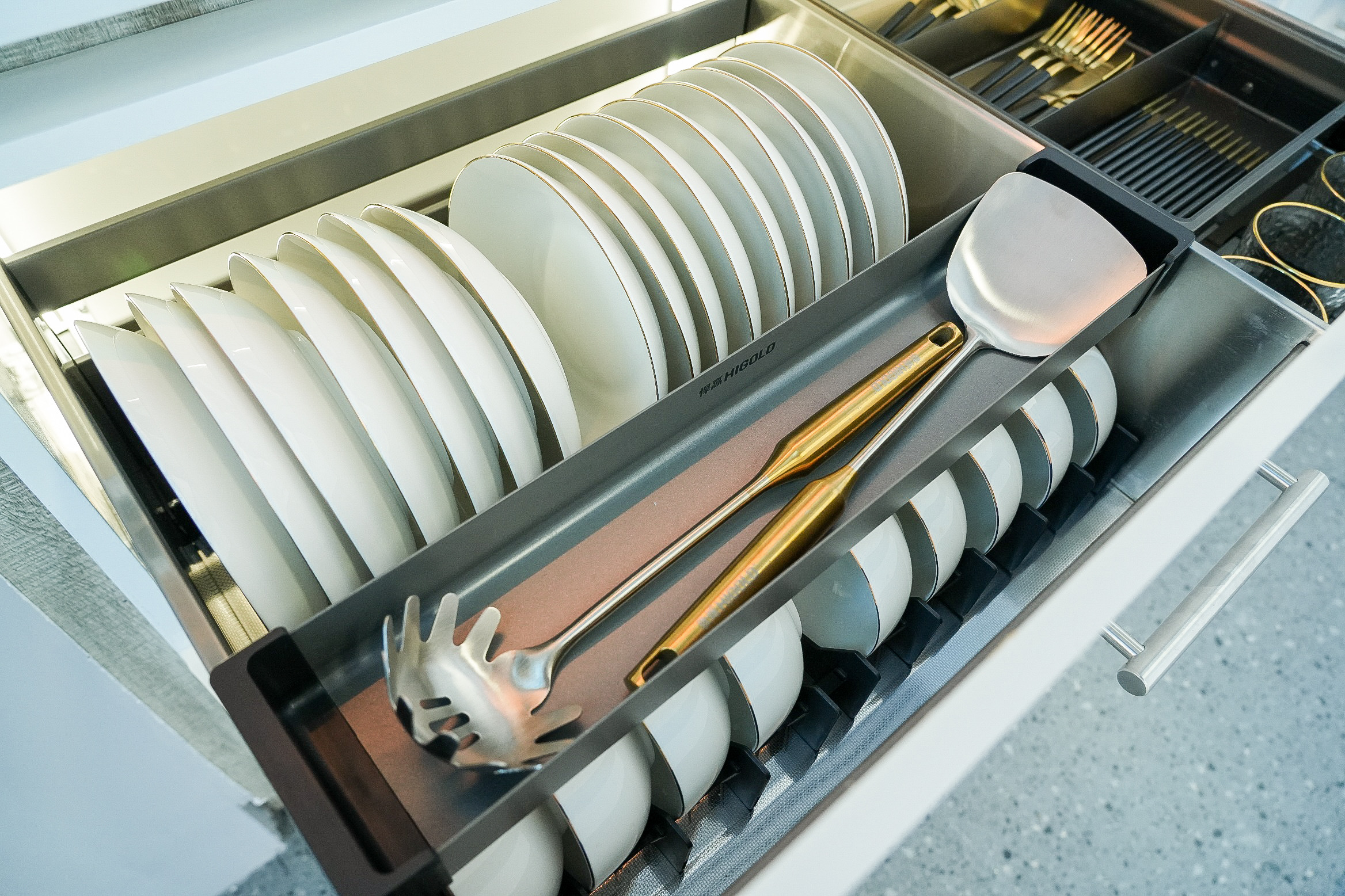 一景一物,在层层递进的陈列中传达美学;一推一拉,在温润轻盈的触碰间寄放理想。不锈钢板篮巅峰之作,全新力作希勒6.0Mini惊艳亮相,以至钢本色与极简的流线艺术,博得阵阵观赏热潮。天生不凡、向美而生的360°高柜旋转篮·陀飞轮,让机械浪漫与家居收纳同频共振。突破传统、主宰空间的悍高星链2.0崭新而来,全新复式抽中抽设计收获各方赞誉。灵捷沉稳的悍高G系列同步全拉出隐藏导轨闪耀面世,滑动有形、入耳无声,时刻动人心魄。