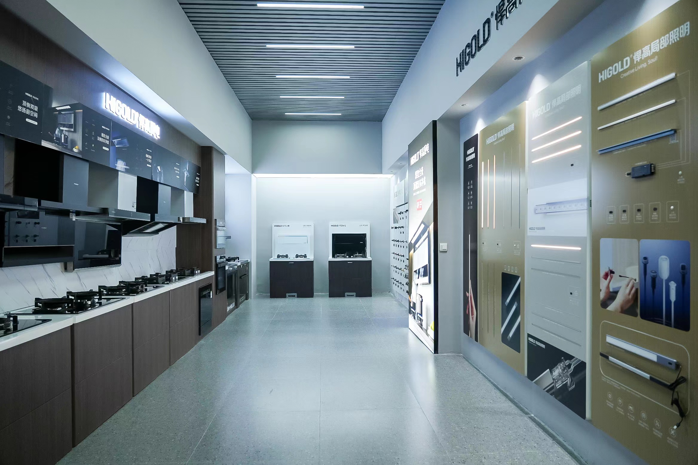 新开业的悍高济南旗舰店内,功能五金、基础五金、装饰五金、智能厨电等多元化体验区域尽显独特气质与视觉张力。行之所至,移步易境,店内触手可及的细腻质感,至精至奢的原创设计,光影色彩的巧妙点缀,以及延伸的过道、宽奢的尺度,让每一步皆为仪式。