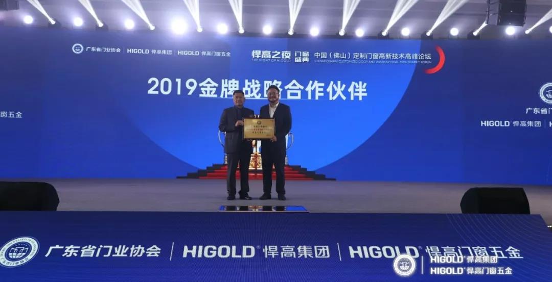 给悍高授予2019金牌战略合作伙伴牌匾